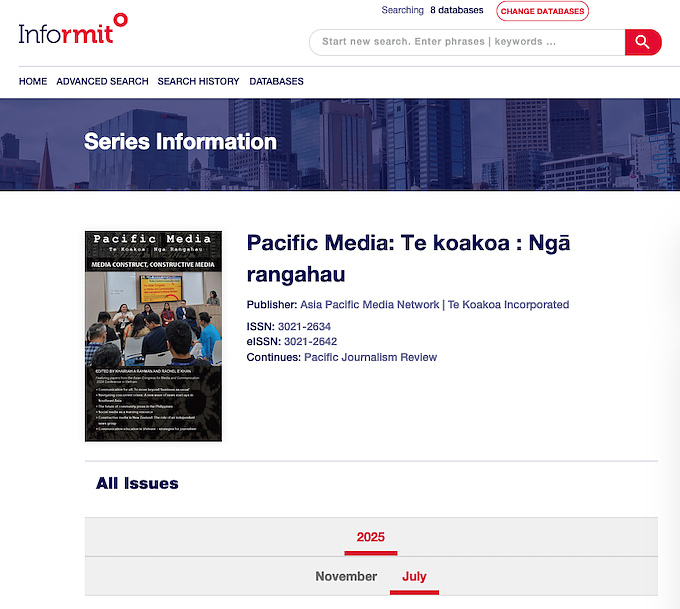 PACIFIC MEDIA WATCH A new Pacific Media research publication and outlet for academics and community advocates has now been added to the Informit database for researchers.