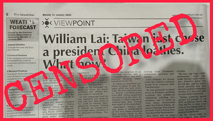 In-depth Solomons reports that he also emailed the owners and editors of the country’s main media outlets, urging them to adopt the Chinese narrative on the Taiwanese elections and sharing two articles he asked them to publish.